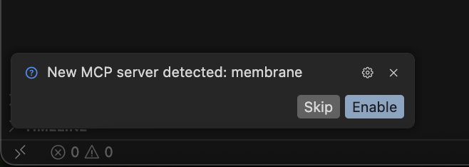 Grant permission for Cursor to use Membrane's development MCP Server: