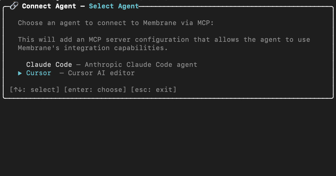 Membrane can connect to Cursor to provide it with tools, context, and infrastructure that make it great at building product integrations.